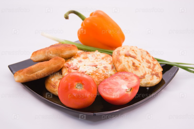 Выпечка на тарелке с овощами
