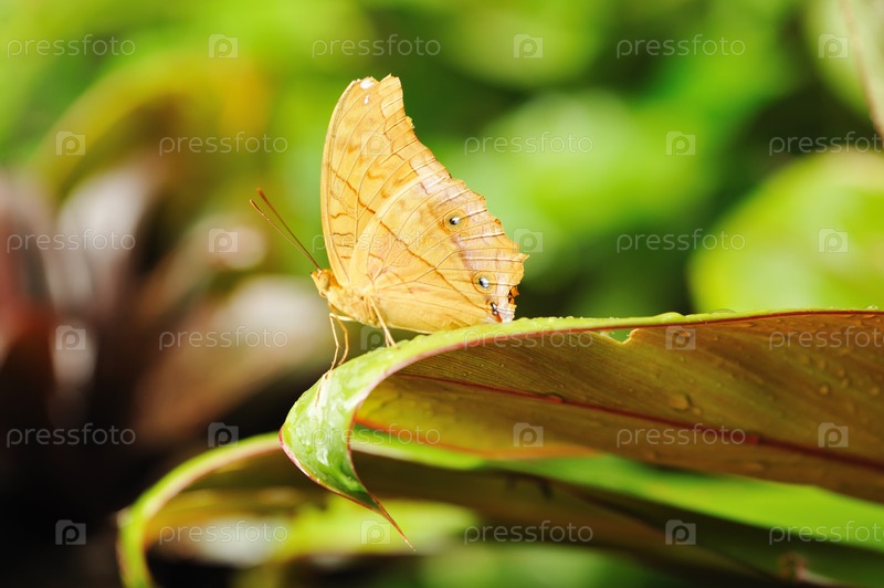 Тропическая бабочка на зеленом листе