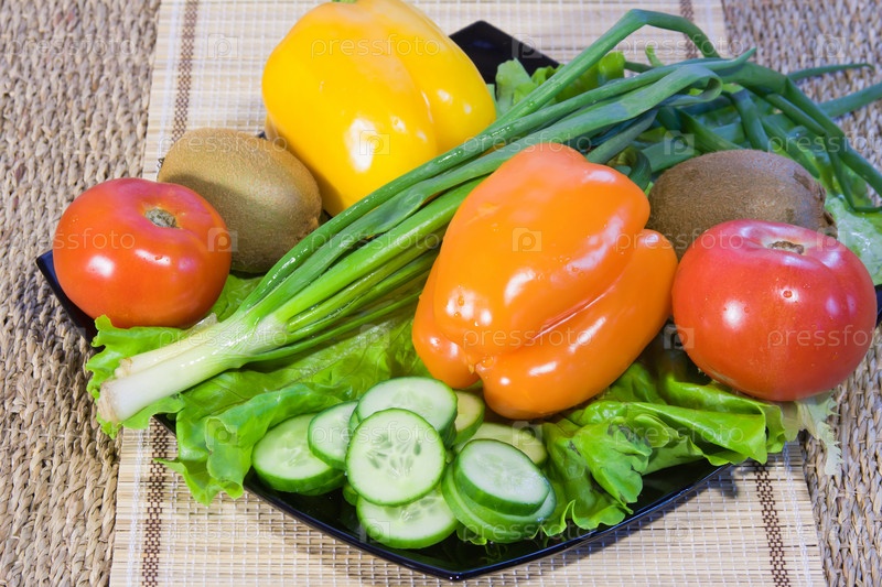 Фрукты и овощи на тарелке