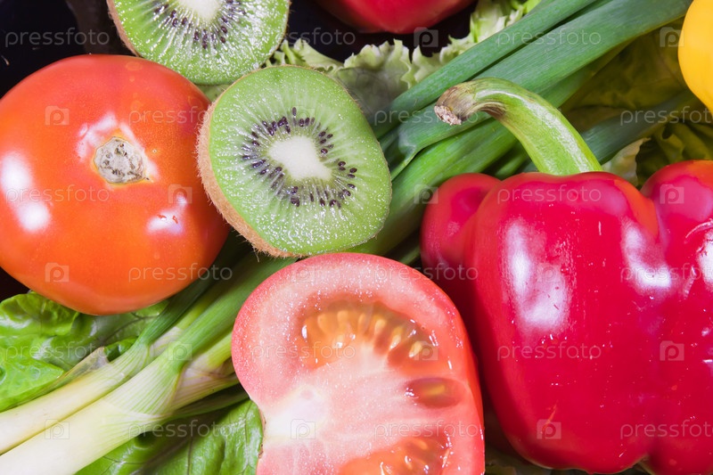 Фрукты и овощи на тарелке