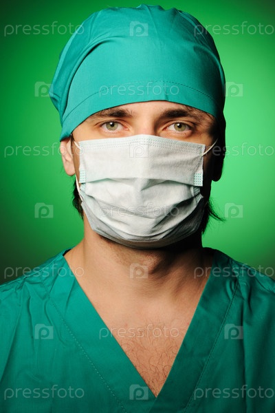 Хирург в маске на зеленом фоне