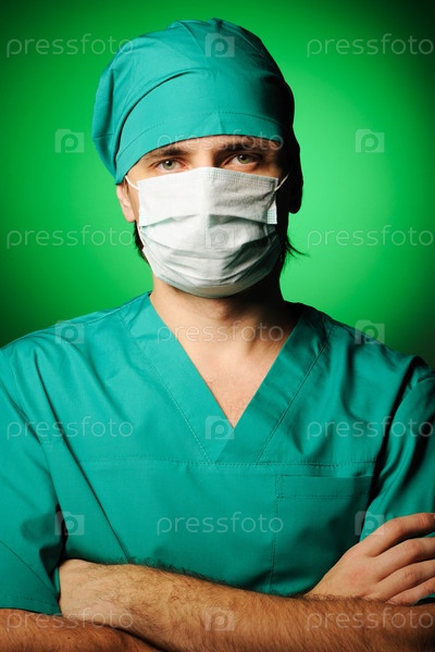 Хирург в маске на зеленом фоне