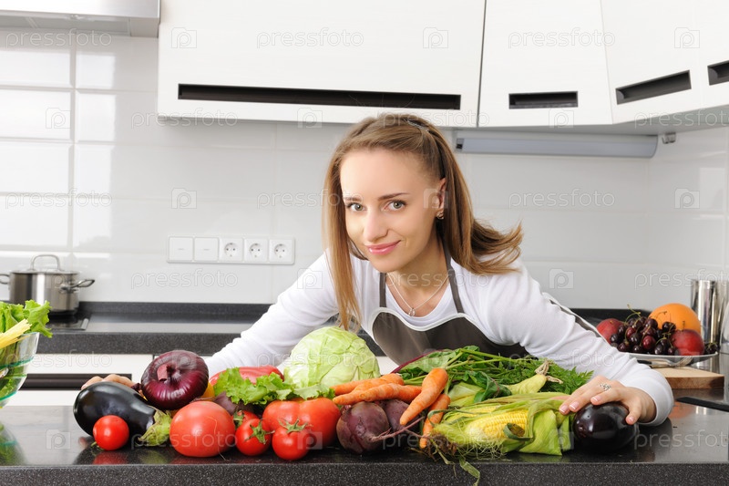 Девушка готовит еду на кухне