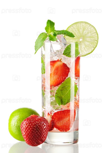 Клубничный коктейль Мохито на белом фоне