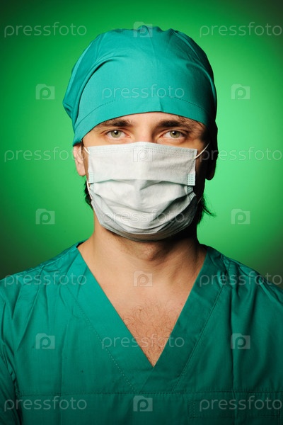 Хирург в маске на зеленом фоне