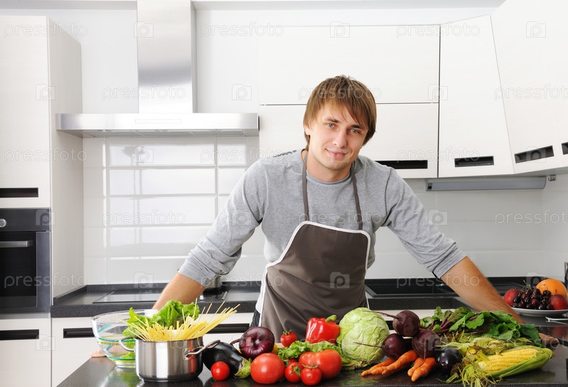 Мужчина в современной кухне