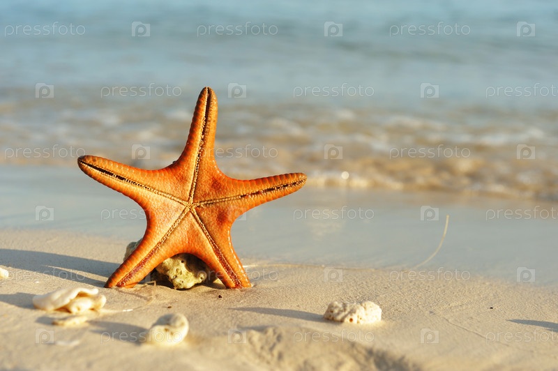 Морская звезда на песчаном пляже