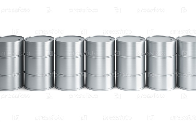 Ряд бочек для нефти, на белом фоне
