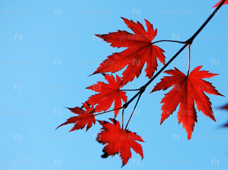 Осенние кленовые красные листья в солнечном свете