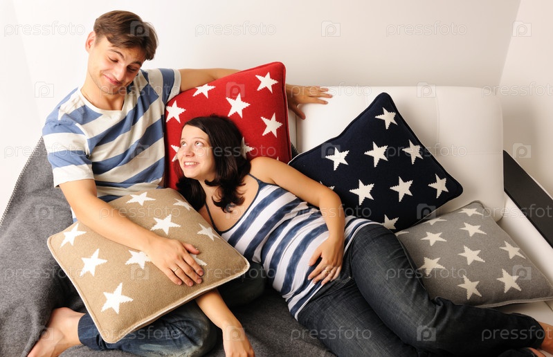 Счастливая пара на диване