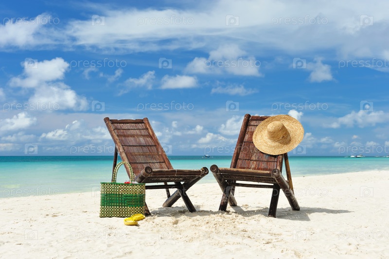Шезлонги на тропическом пляже