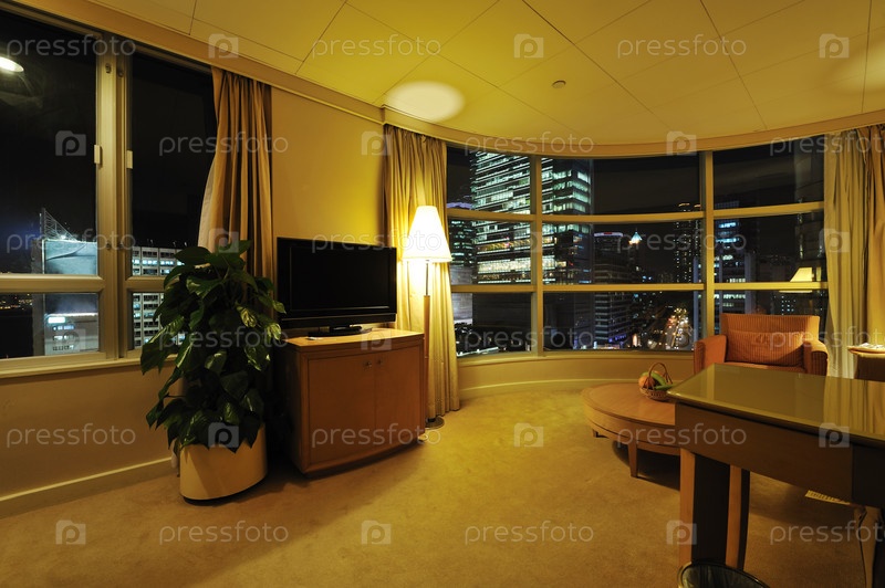 Интерьер гостиничного номера с большим окном