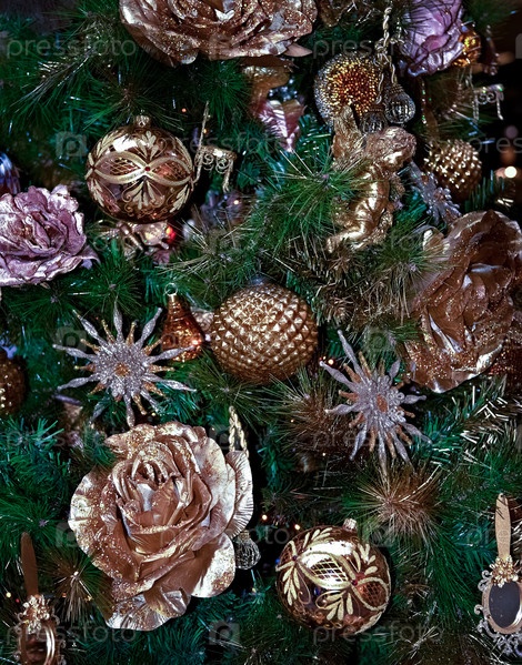 Украшенная новогодняя елка крупным планом