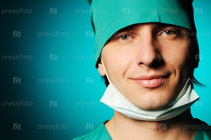 Портрет хирурга на синем фоне