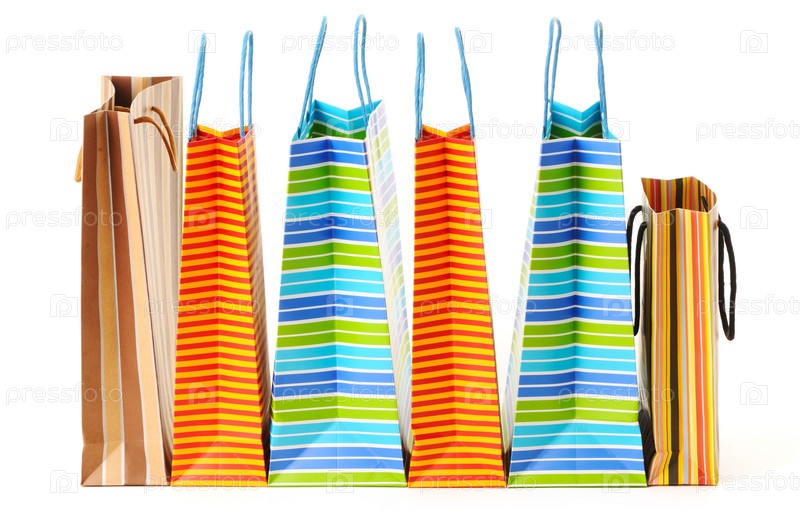 Пакеты с покупками на белом фоне