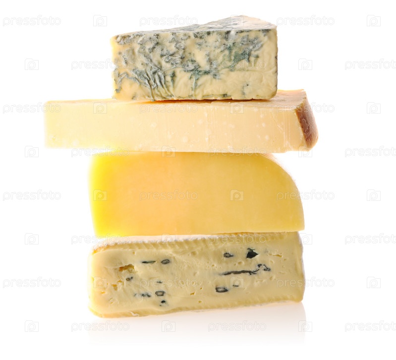 Различные виды сыра на белом фоне