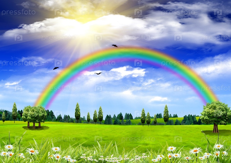 Красивая радуга в поле