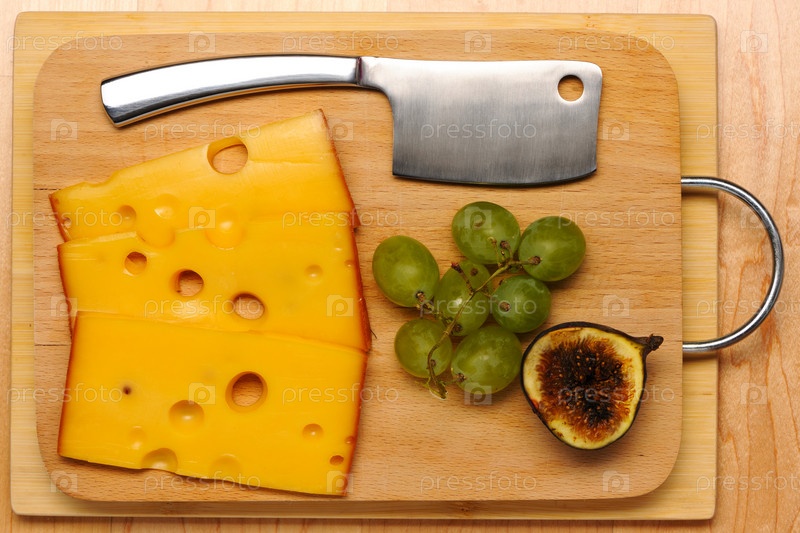 Швейцарский сыр и нож на разделочной доске