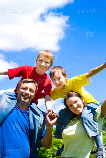 Мальчики с родителями летом в парке