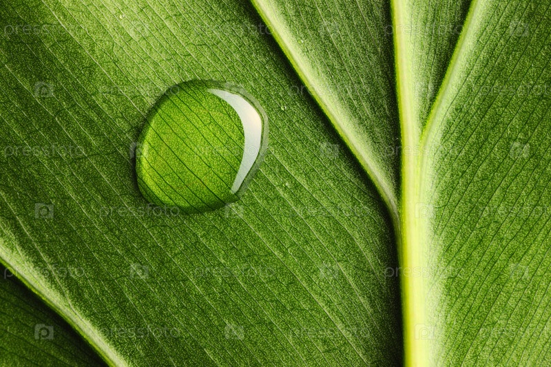 Одна водная капля на зеленом листе