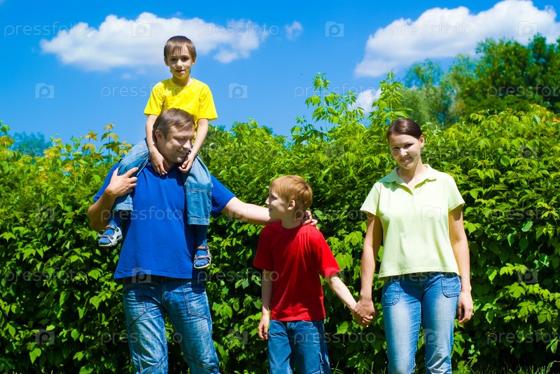Счастливая семья летом в парке