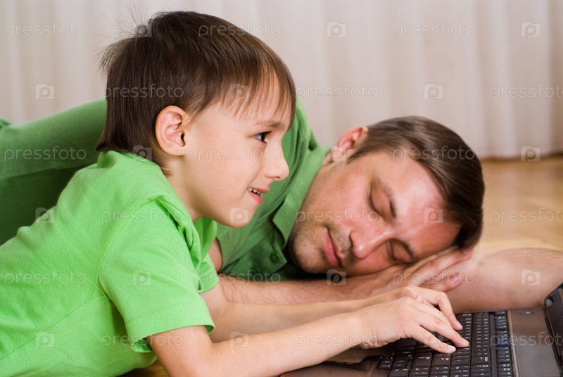 Отец с сыном у ноутбука