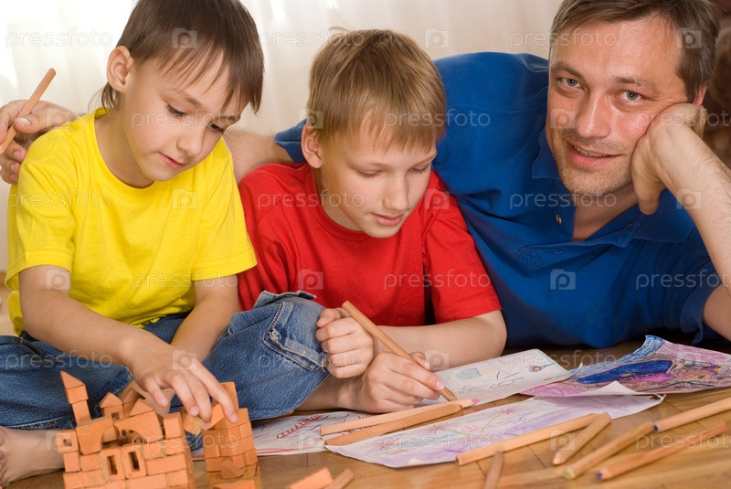 Счастливый отец играет с сыновьями