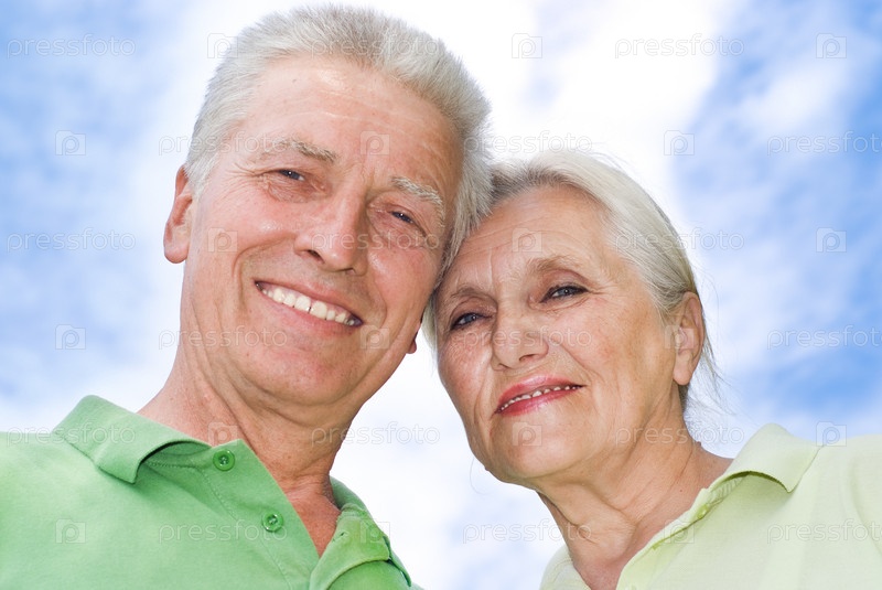 Счастливая пожилая пара на фоне неба