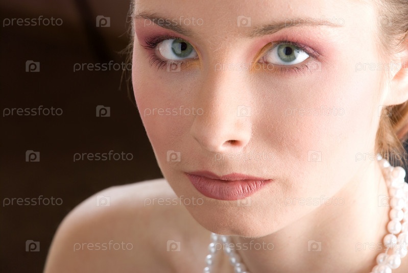 Красивая модель с зелеными глазами, смотрящая в камеру