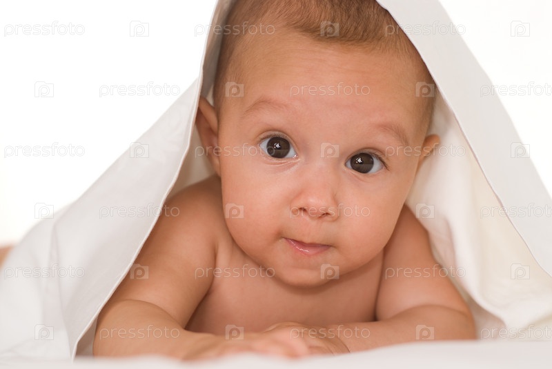 Малыш крупным планом на белом фоне