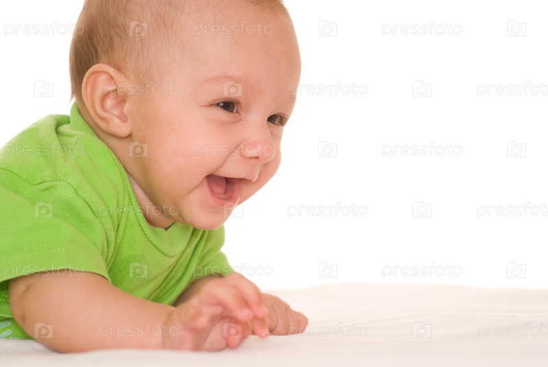 Счастливый малыш крупным планом на белом фоне