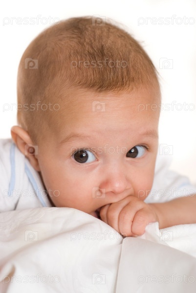 Малыш крупным планом на белом фоне