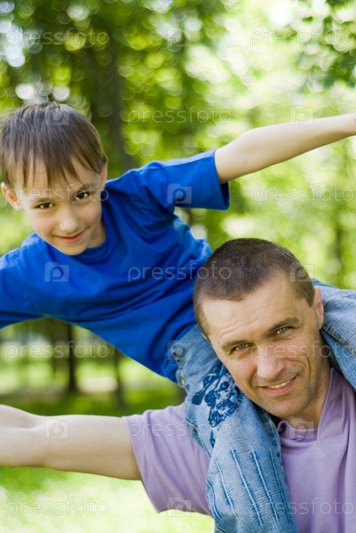 Счастливый отец с сыном в парке