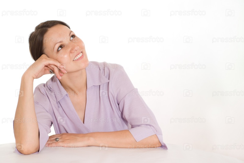 Портрет молодой женщины на белом фоне