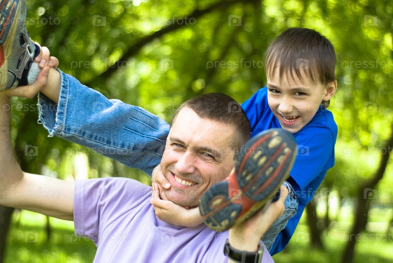 Счастливый отец с сыном в парке