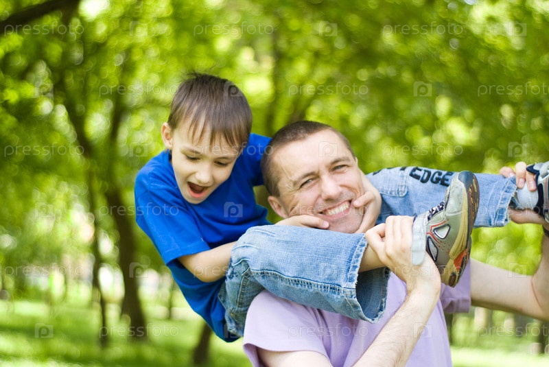 Счастливый отец с сыном в парке