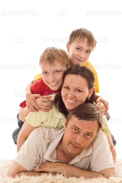 Счастливая семья на белом фоне