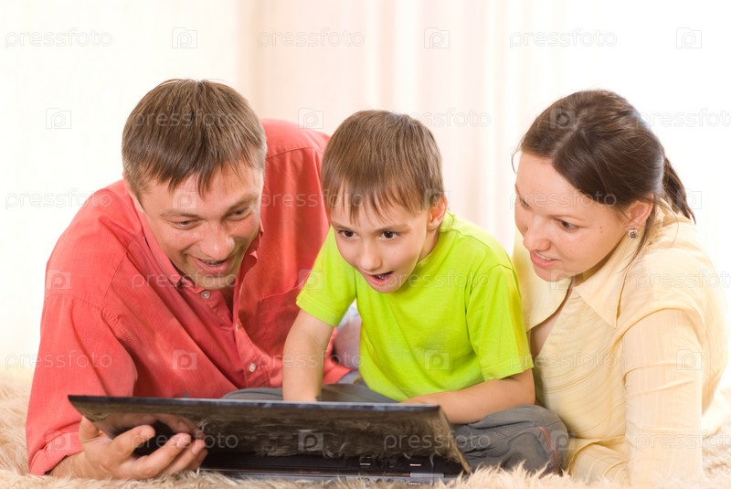 Счастливая семья за ноутбуком
