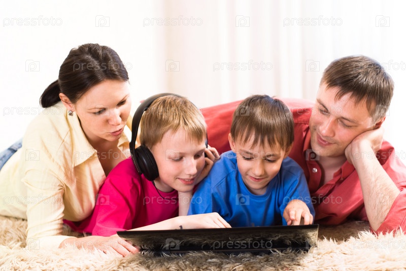Счастливая семья за ноутбуком