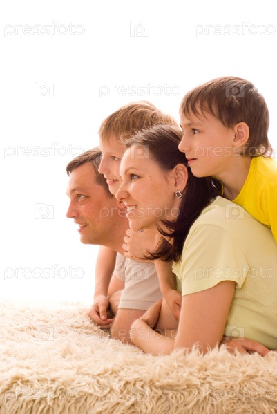 Счастливая семья на белом фоне