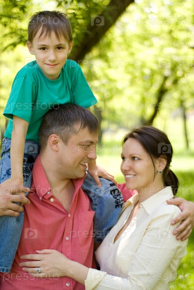 Счастливая семья в парке