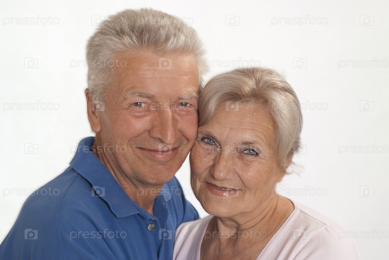 Счастливая пожилая пара на белом фоне