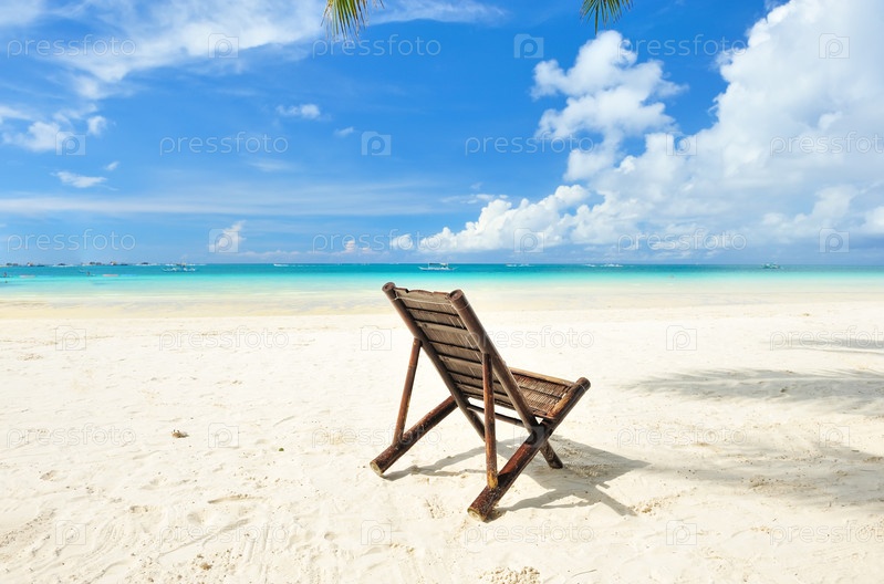 Плетеное кресло на пляже тропического острова, Филиппины