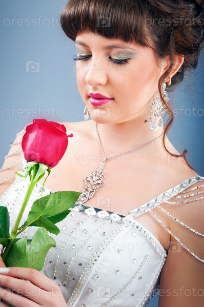 Красивая невеста с розой в руках