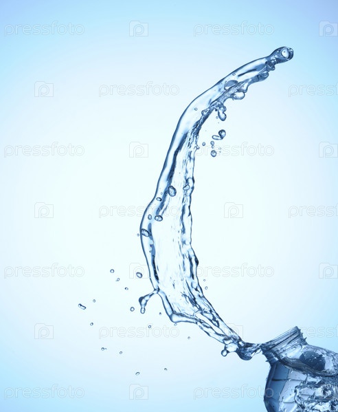 Всплеск воды на голубом фоне