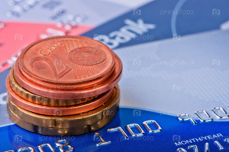 Стопка из монет на кредитной карте