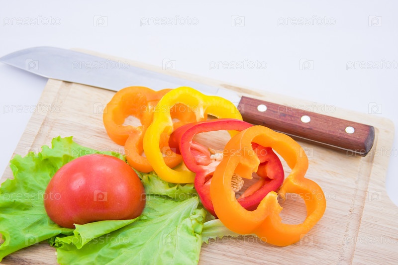 Овощи на разделочной доске и нож