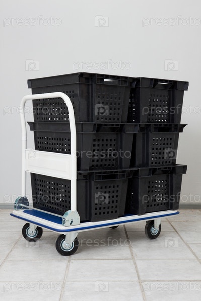 Грузовая тележка с пластиковыми ящиками