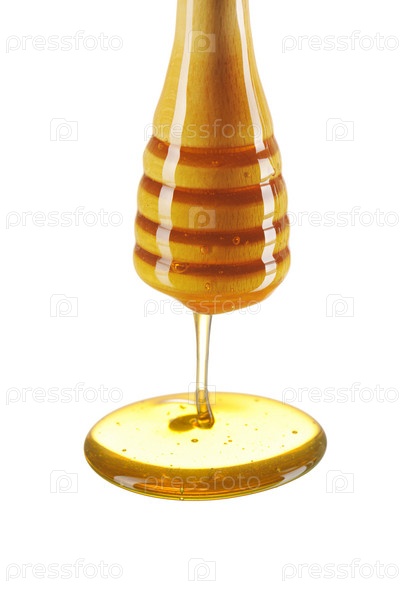 Ложка с медом на белом фоне