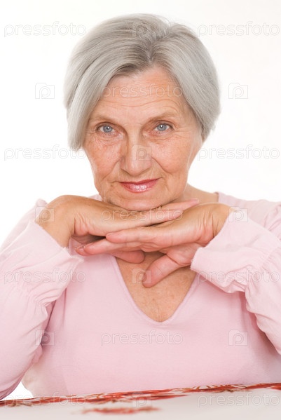 Красивая пожилая женщина на белом фоне